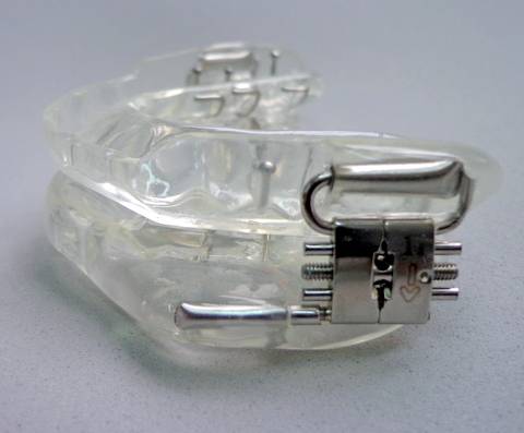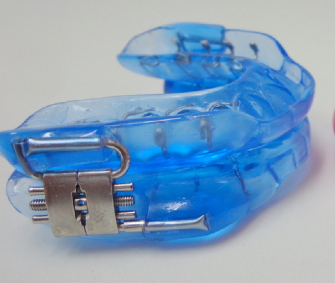 O aparelho é feito em acrÃlico e com grampos de retenção. Foi desenvolvido pelo Dr. Jonathan Parker - USA